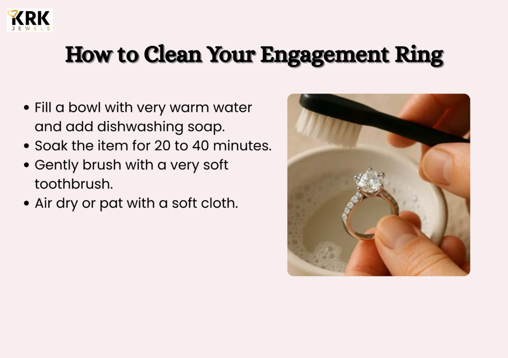 This method is safe for a toi et moi engagement ring moissanite and helps remove oils, lotions, and everyday residue that dull sparkle.
